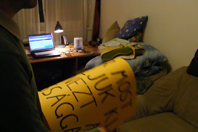 Tegnap este fél hétkor kb 40 melegjogi aktivista (és két angyal, az ő idétlenkedésüktől elhatárolódom, kérem szépen) énekelt meg ehhez hasonló dolgokat csinált az AB épülete előtt. Eredetileg a regikapcsi feletti öröm lett volna az apropója a kis összejövetelnek, de a Történelem (hehe) közbeszólt. Szerintem adekvátabb lett volna az országház előtt tüntizni, fel is vetettem az ötletet, de a kiérkező közegek szerint ez területfoglalási engedély hiányában a hatósági föllépés veszélyét rejti magában. Itt is látszik, hogy sok tekintetben különbözik a tüntetéskultúránk: nekem eszembe sem jutna rendőrtől engedélyt kérni bármihez is. Egyik transzparensünk az AB elé készült: „Köszi, mi úgyis házasságot akarunk” – a másikat („Most próbáljuk ki ugyanezt a házassággal”) a parlament előtt hordoztuk körbe egy kis gerillaakció keretében, mely önnön perverz és önkínzó humorunk kielégítésén kívül persze semmi egyebet nem szolgált. Előtte hasonló indíttatásban írtunk kedves gyerekbetűkkel a levelet a BRFK-nak, melyben bejelentettük, hogy föl vagyunk háborodva és ezennel tessék tudomásul venni, hogy most tüntetni fogunk.